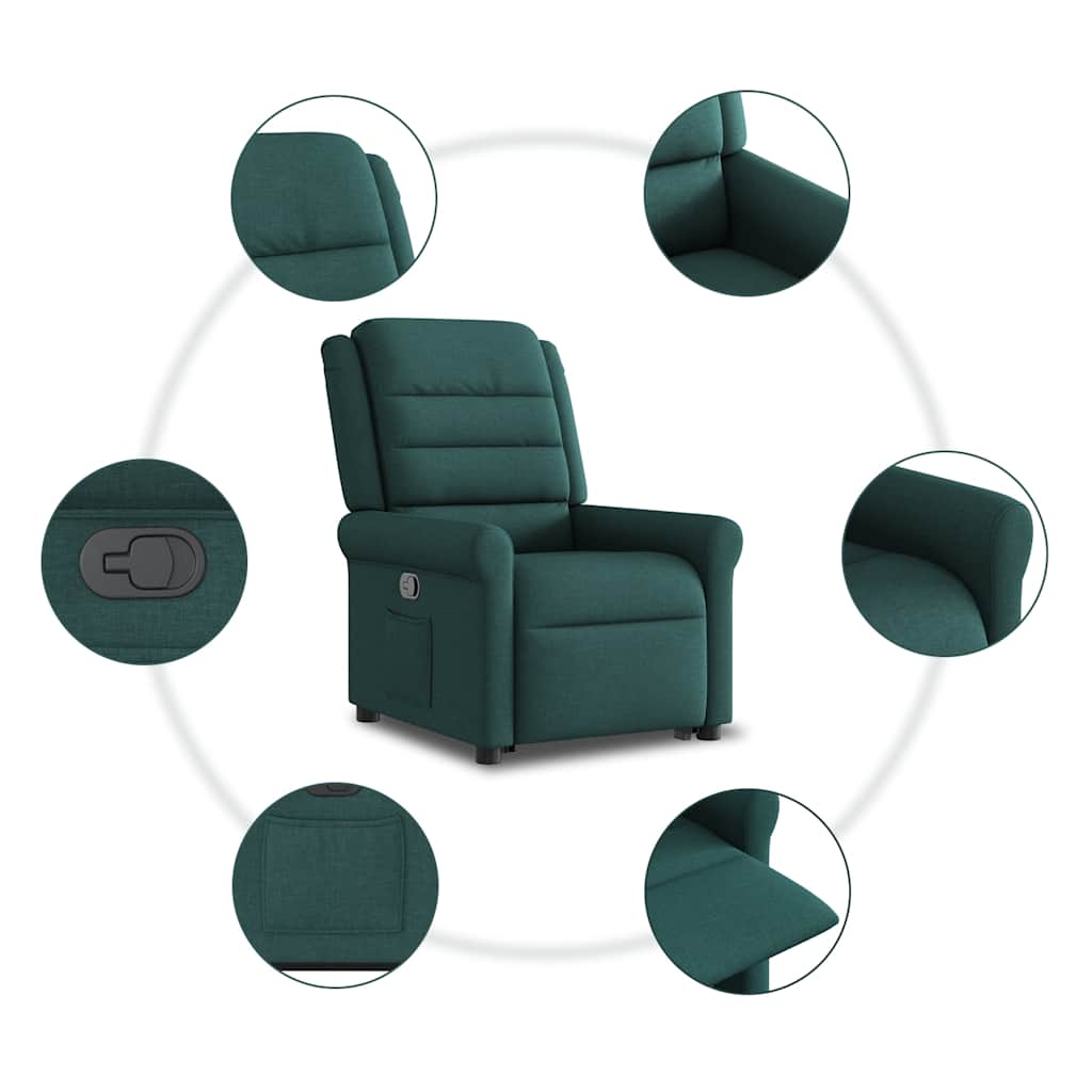 vidaXL Πολυθρόνα Ανακλινόμενη με Ανύψωση Σκούρο Πράσινη Υφασμάτινη