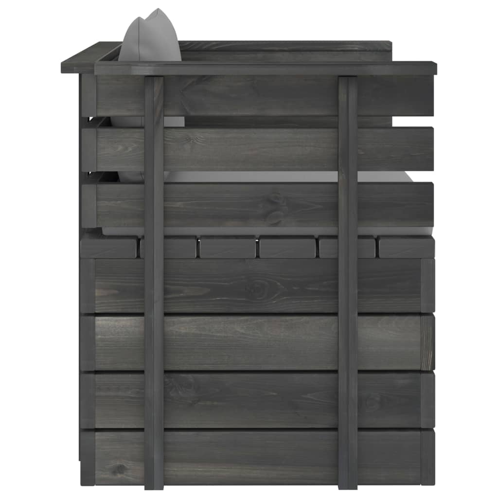 Αυτό το κάθισμα εξωτερικού χώρου κατασκευάζεται από μασίφ ξύλο πεύκου, ώστε να είναι ανθεκτικό και σταθερό. Το έπιπλο διαθέτει συμπαγή κατασκευή και δε χρειάζεται πολλή συντήρηση. Χάρις στην ταπετσαρία από 100% πολυεστέρα και την πλούσια επένδυση, τα μαξιλάρια παλέτας είναι μαλακά και παρέχουν υψηλή άνεση. Το κάθισμα είναι ιδανικό για οικογενειακές βραδιές ταινίας, για να παίζετε βιντεοπαιχνίδια και να απολαμβάνετε την καλοκαιρία στη βεράντα. Αυτό το έπιπλο εξωτερικού χώρου διαθέτει αρθρωτή σχεδίαση, γεγονός που το καθιστά ευέλικτο και εύκολο στη μετακίνηση, ώστε να ταιριάζει σε κάθε διαρρύθμιση. Μπορείτε να το συνδυάσετε με άλλα αρθρωτά τμήματα και να δημιουργήσετε το σαλόνι κήπου που σας ταιριάζει!