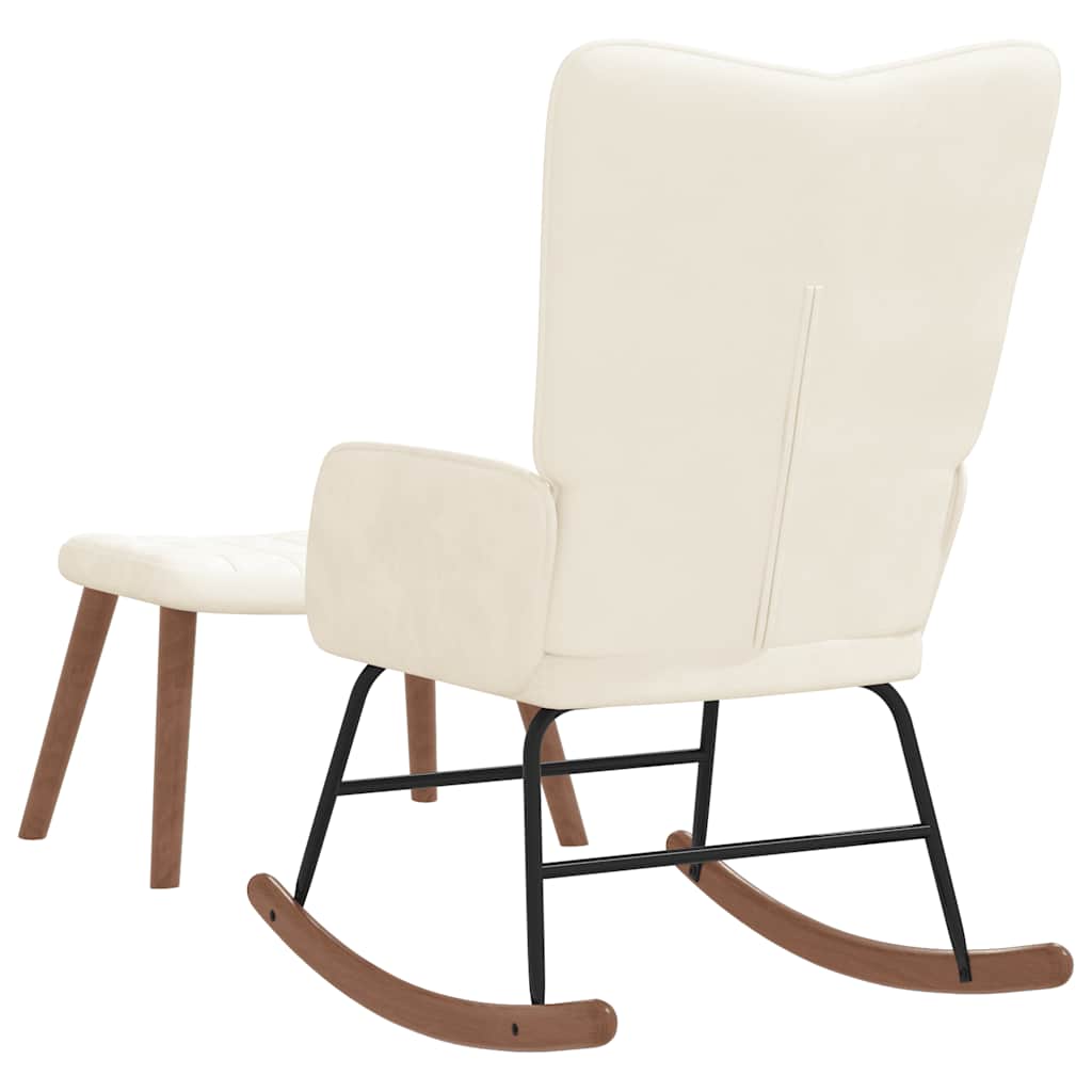 vidaXL Πολυθρόνα Κουνιστή Λευκό Κρεμ Βελούδινη με Σκαμπό