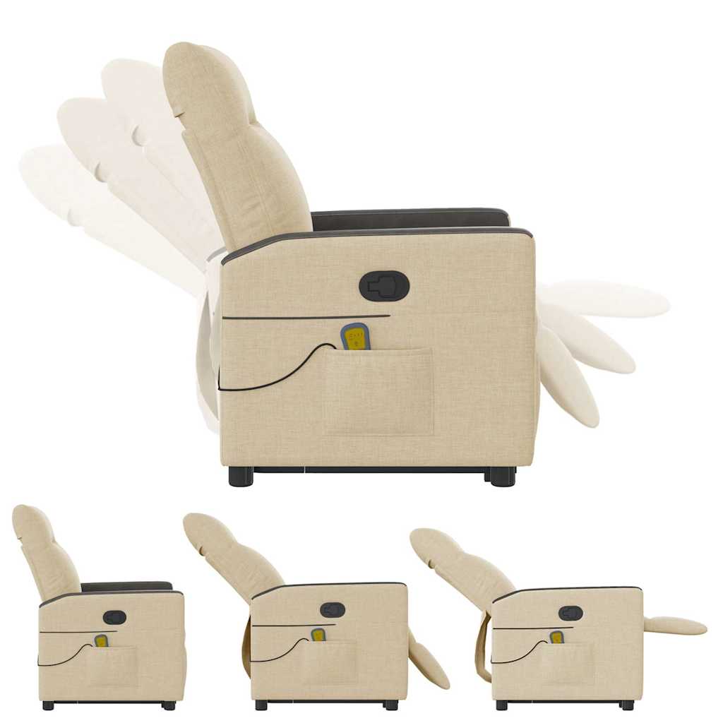 vidaXL Πολυθρόνα Μασάζ Ανακλινόμενη με Ανύψωση Κρεμ Υφασμάτινη