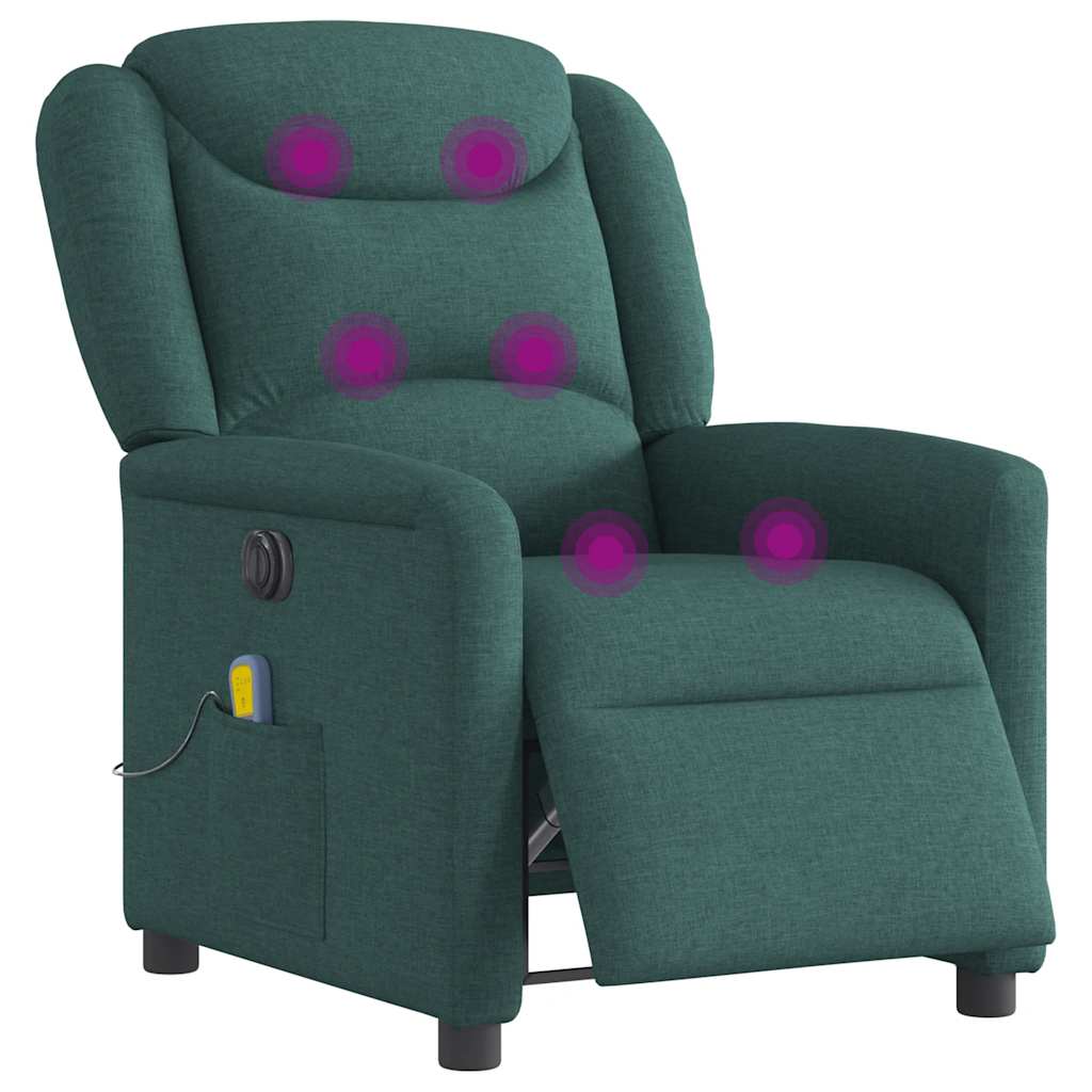 vidaXL Πολυθρόνα Μασάζ Ηλεκτρική Ανακλινόμενη Σκ. Πράσινο Υφασμάτινη