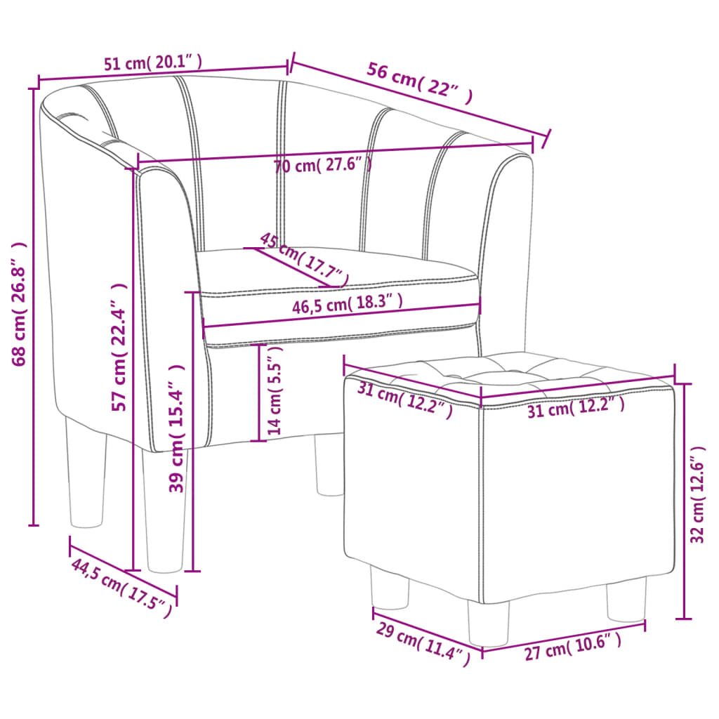vidaXL Πολυθρόνα Μπάρελ με Υποπόδιο Καφέ από Συνθετικό Δέρμα