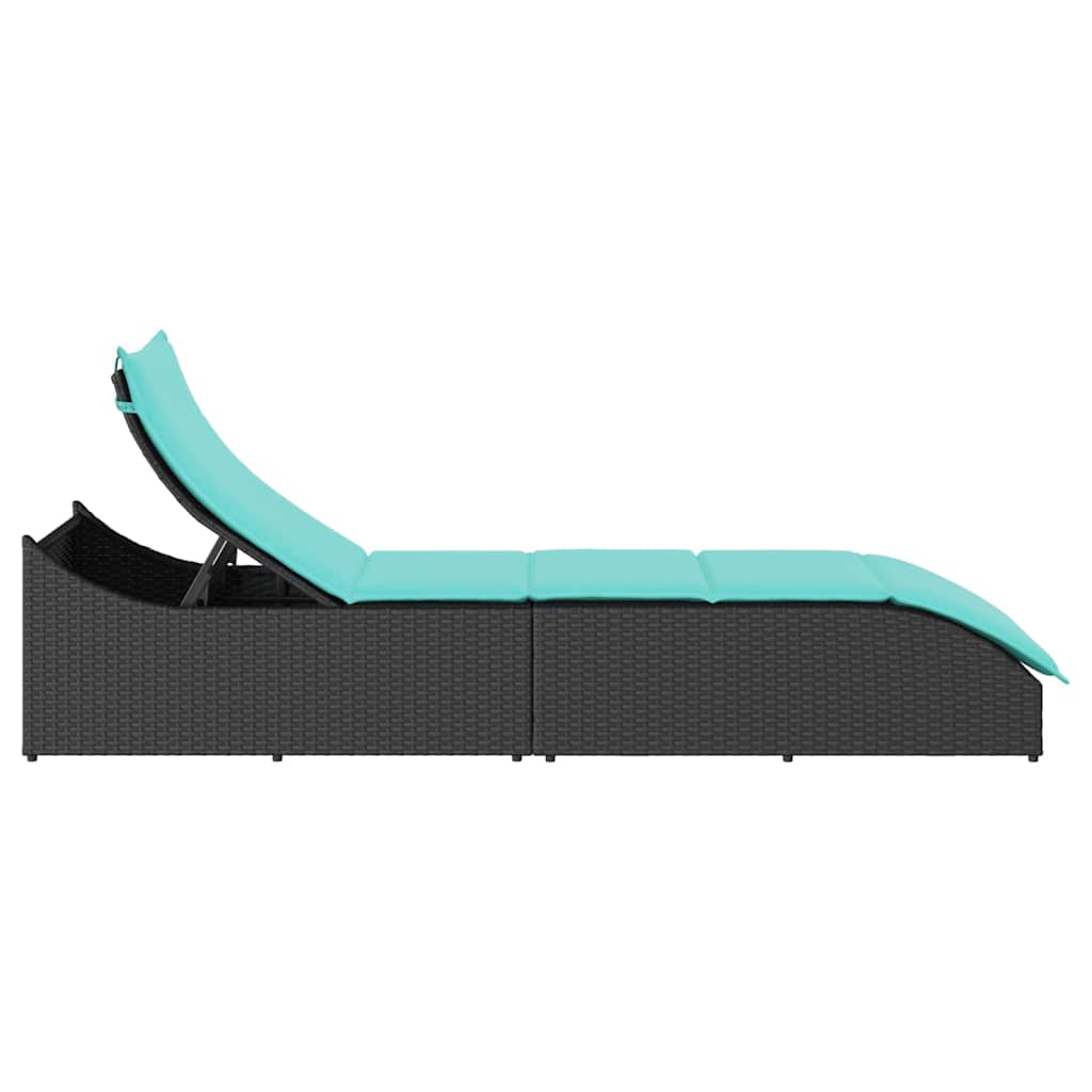 vidaXL Πτυσσόμενη ξαπλώστρα με μαξιλάρι και αποθήκευση Μαύρο