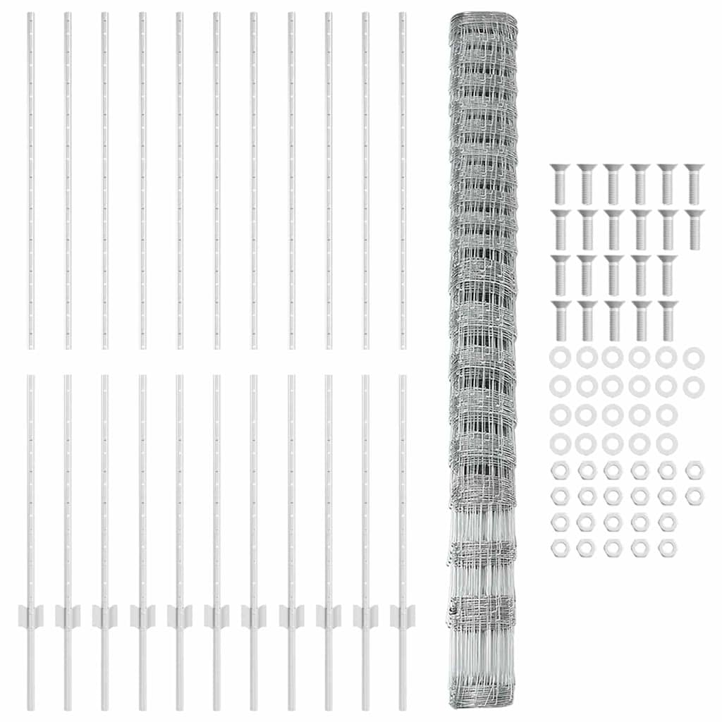 Αυτό το Σετ Γαλβανισμένου Ατσάλινου Φράχτη για Χωράφια είναι φοβερό για να περιφράξει τους εξωτερικούς χώρους σας. Ο σκληρός του σχεδιασμός είναι ιδανικός για να προστατέψει τα χωράφια σας και δίνει μια βιομηχανική αίσθηση στον κήπο σας. Το γκρι χρώμα δεν είναι μόνο όμορφο, αλλά κρατά ασφαλή τα ζώα και τις καλλιέργειές σας.