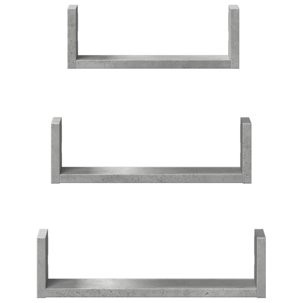 vidaXL Ράφια Τοίχου 3 τεμ. Γκρι του Σκυροδέματος από Επεξ. Ξύλο