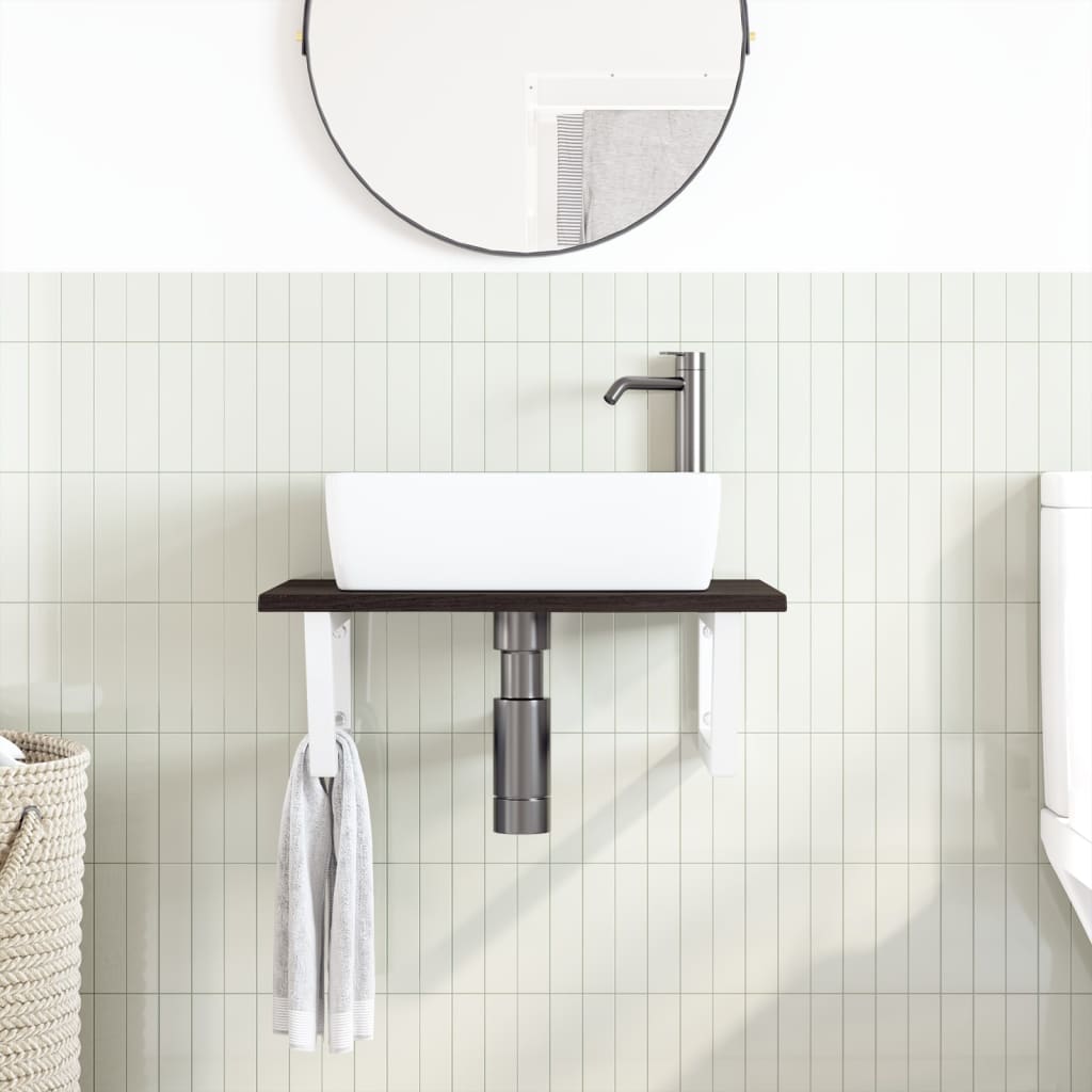 vidaXL Ράφι Νιπτήρα Τοίχου από Ατσάλι / Μασίφ Ξύλο Δρυός