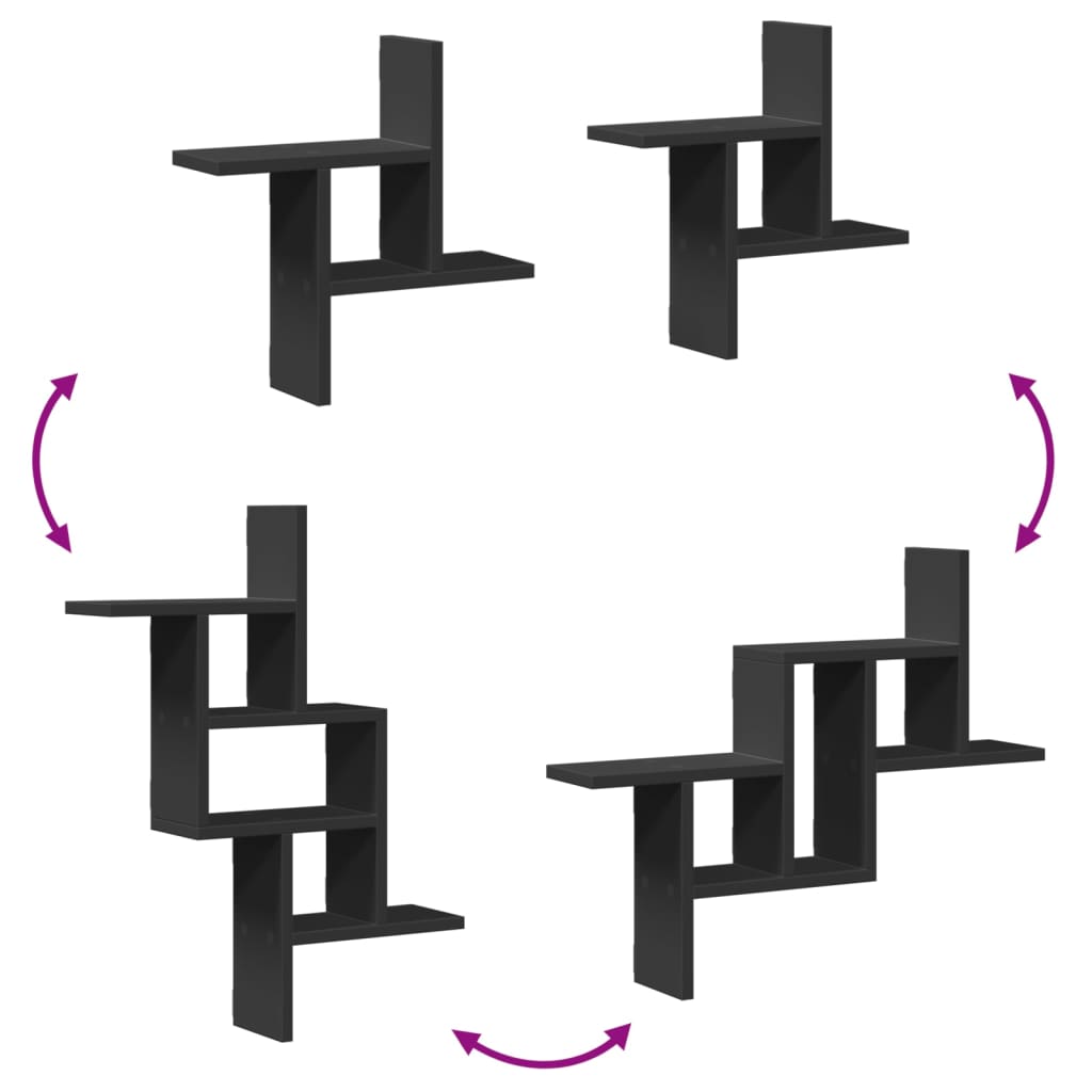 vidaXL Ραφιέρες Τοίχου 2 τεμ. Μαύρες 38x12x38 εκ. από Επεξ. Ξύλο