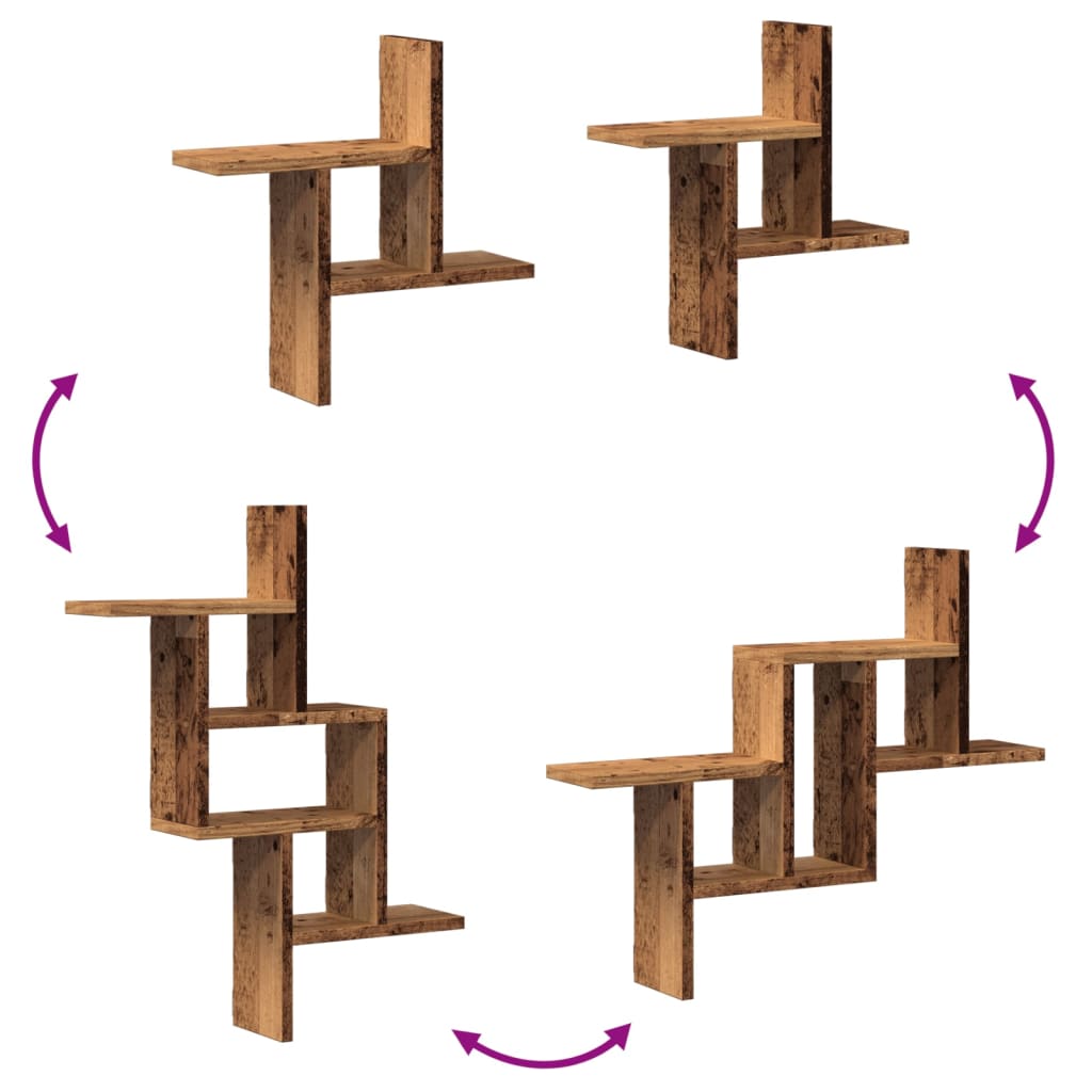 vidaXL Ραφιέρες Τοίχου 2 τεμ. Όψη Παλαιού Ξύλου 38x12x38εκ. Επεξ. Ξύλο