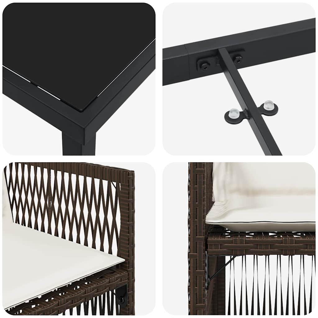 - Υλικά: Αυτό το σετ τραπεζαρίας είναι κυρίως φτιαγμένο από πολυρότανο, που του δίνει ανθεκτικότητα και ωραία εμφάνιση—τέλειο για εξωτερικούς χώρους. Τα ατσάλινα μέρη προσθέτουν δύναμη και σταθερότητα, οπότε είναι έτοιμο για συχνή χρήση και όλες τις συνθήκες καιρού.