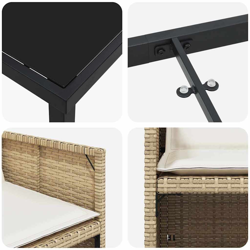 - Μοντέρνα Υλικά: Φτιαγμένο από έξυπνο συνδυασμό πολυρ ατάν και γυαλιού, αυτό το Σετ Εξωτερικής Τραπεζαρίας Μοντέρνας Στυλ ξεχωρίζει για το edgy του στυλ. Το πολυρ ατάν είναι ανθεκτικό, αδιάβροχο και κρατάει το χρώμα του. Επιπλέον, οι γυάλινες επιφάνειες προσθέτουν κομψή πινελιά και είναι εύκολες στη συντήρηση.