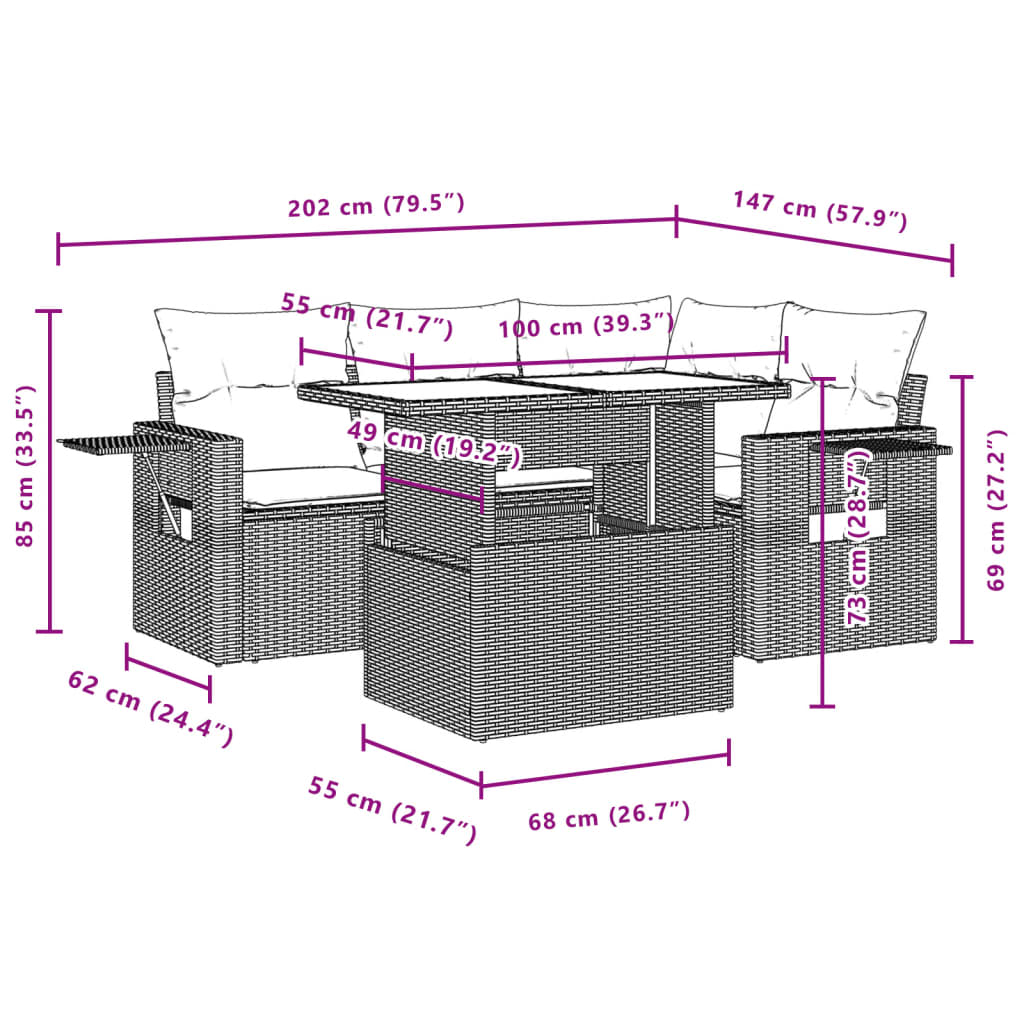 vidaXL Σαλόνι Κήπου Σετ 5 Τεμαχίων Καφέ Συνθετικό Ρατάν με Μαξιλάρια