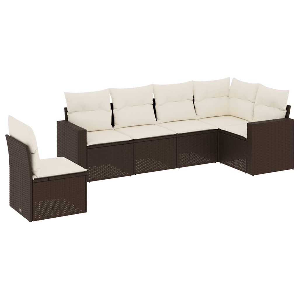 vidaXL Σαλόνι Κήπου Σετ 6 Τεμαχίων Καφέ Συνθετικό Ρατάν με Μαξιλάρια