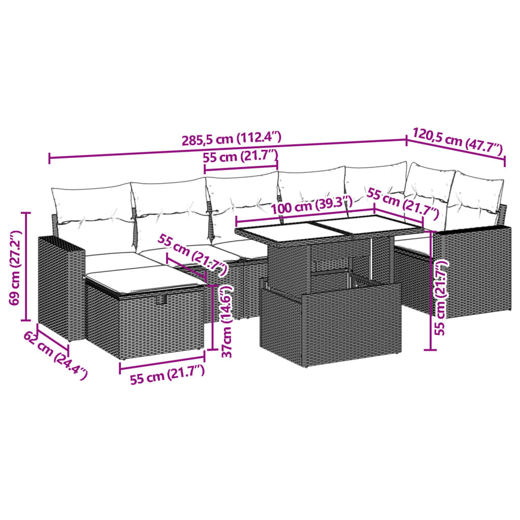 vidaXL Σαλόνι Κήπου Σετ 8 τεμ. Μπεζ Συνθετικό Ρατάν με Μαξιλάρια