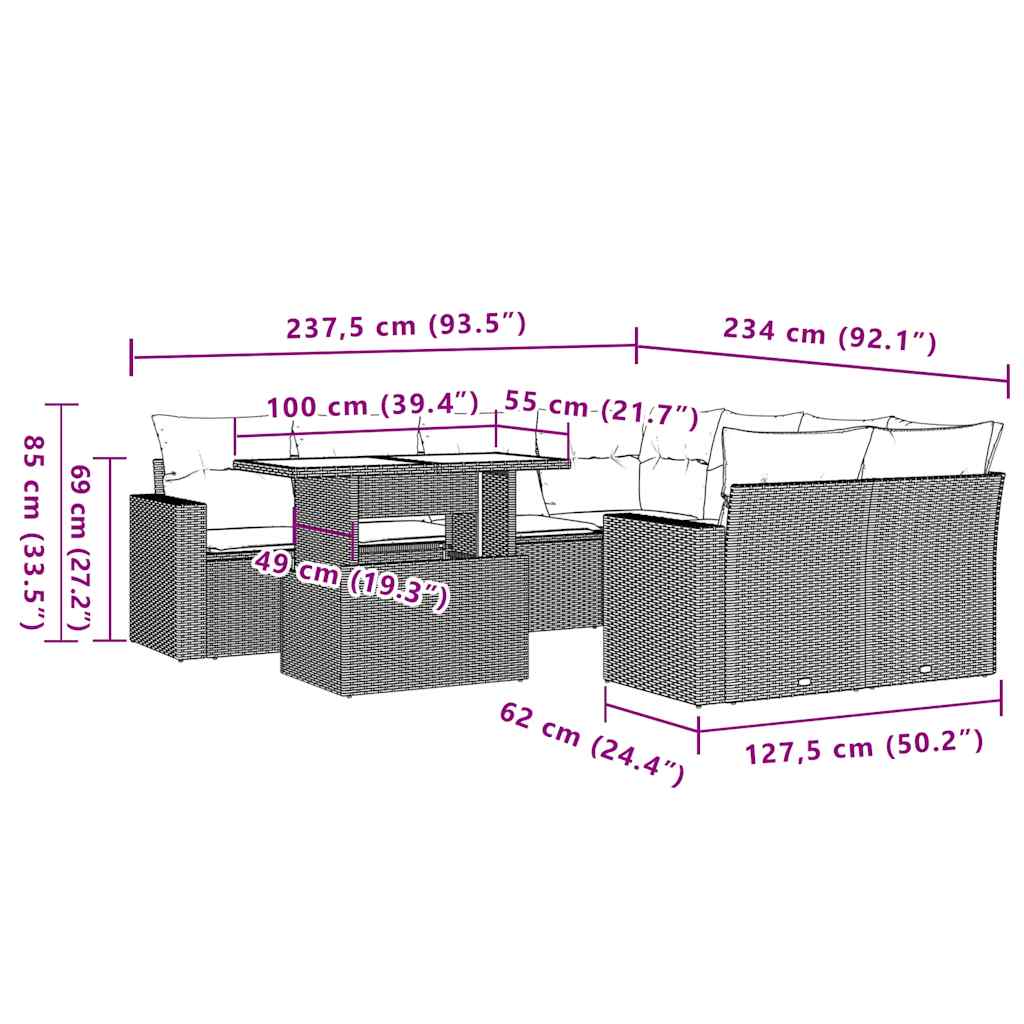 vidaXL Σαλόνι Κήπου Σετ 9 τεμ. Μπεζ Συνθετικό Ρατάν με Μαξιλάρια