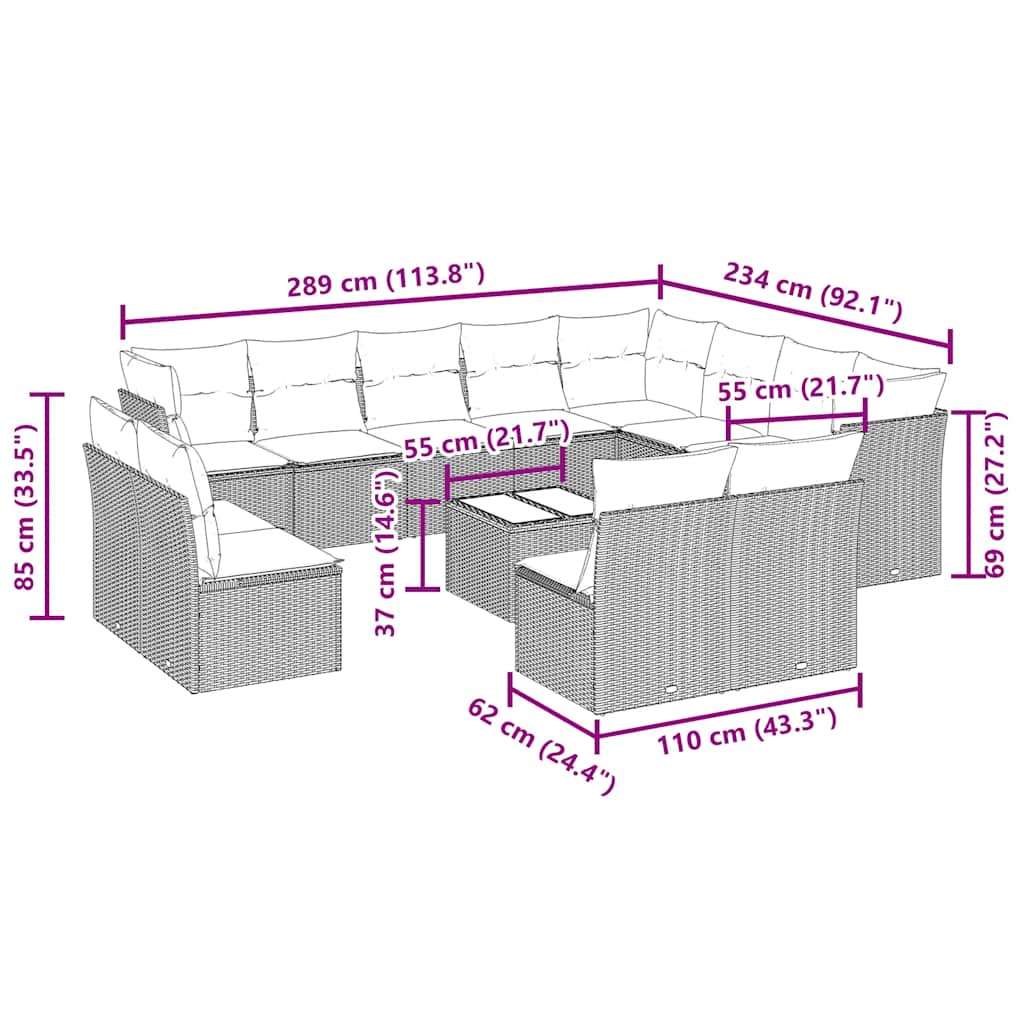 vidaXL Σαλόνι Κήπου 13 Τεμαχίων Γκρι από Συνθετικό Ρατάν με Μαξιλάρια
