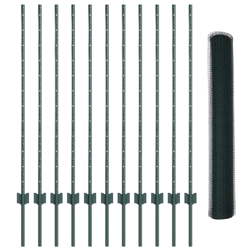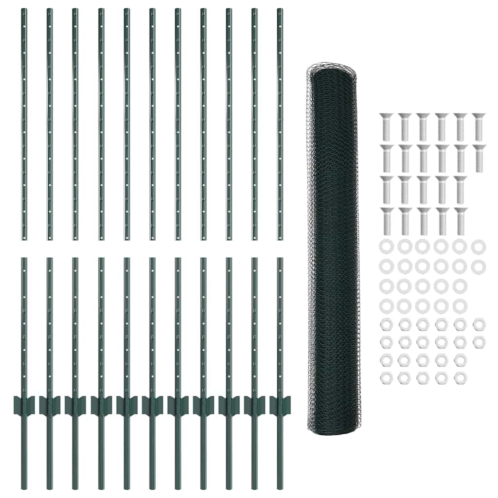 vidaXL Σετ Εξαγωνικού Φράχτη Κήπου Σετ των 2 Πράσινο Μέταλλο 25 x 1.2 μ