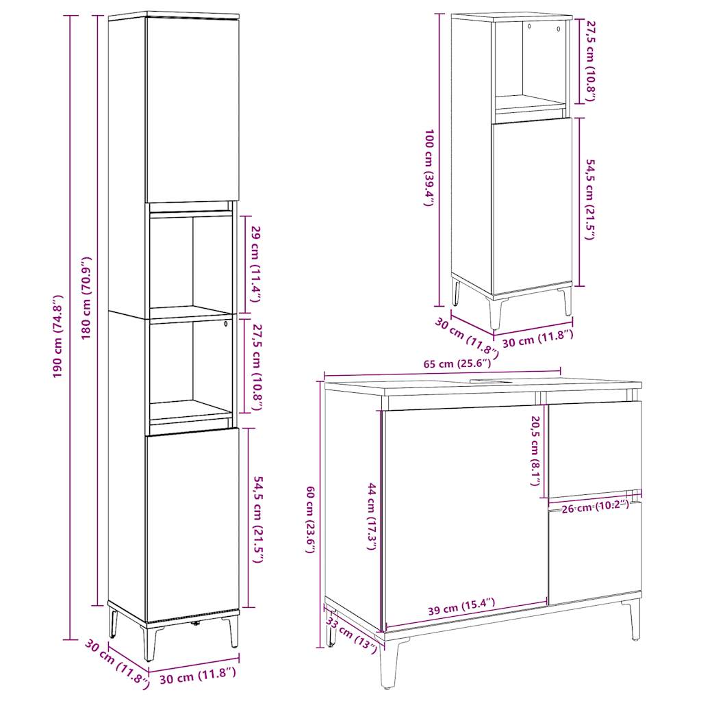 • Διαστάσεις ντουλαπιού μπάνιου (L): 30 x 30 x 190 εκ. (Π x Β x Υ)