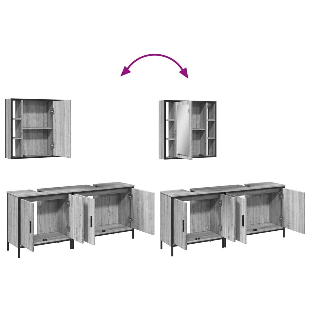 vidaXL Σετ Επίπλων Μπάνιου 3 Τεμαχίων Γκρι Sonoma Επεξεργασμένο Ξύλο