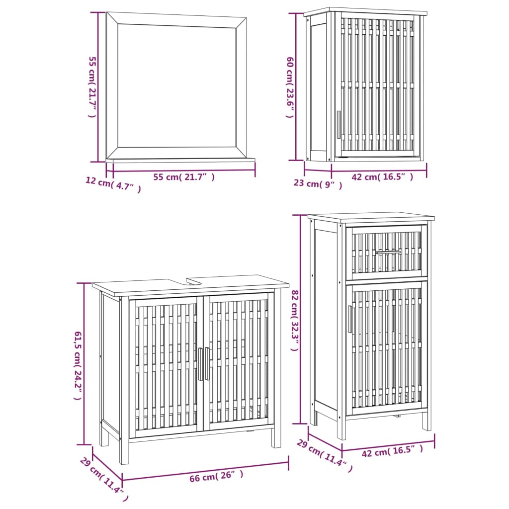 vidaXL Σετ Επίπλων Μπάνιου 4 Τεμαχίων από Μασίφ Ξύλο Καρυδιάς
