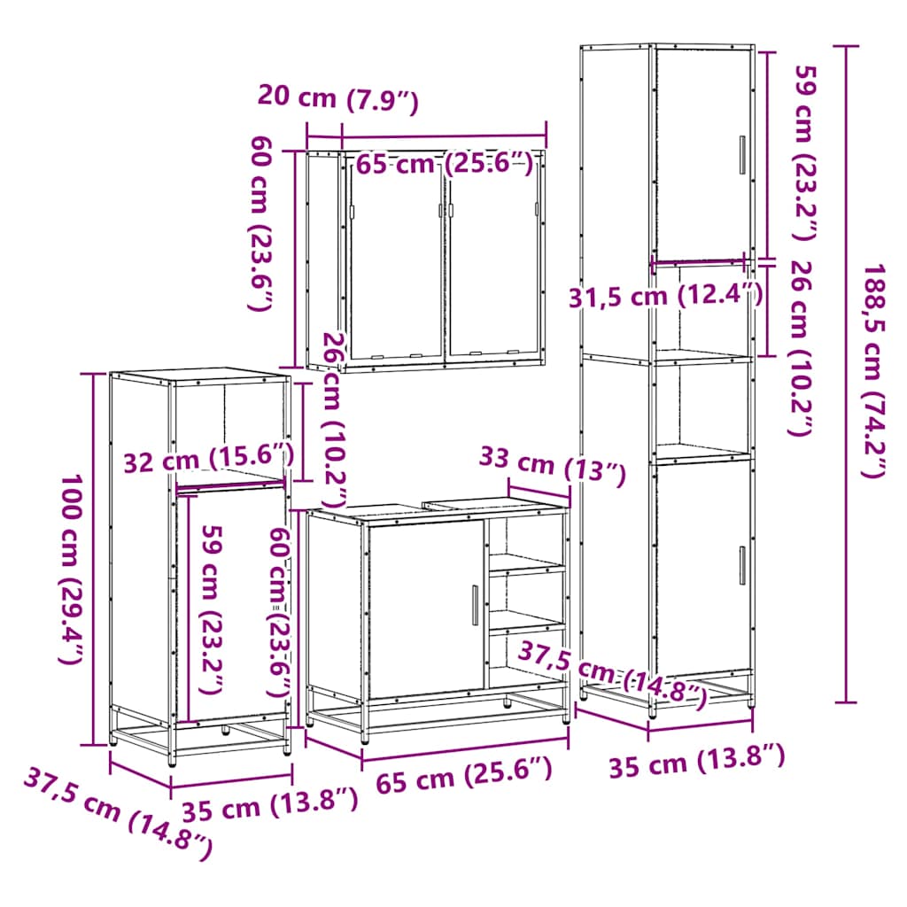 vidaXL Σετ Επίπλων Μπάνιου 4 Τεμαχίων Sonoma Δρυς Επεξεργασμένο Ξύλο