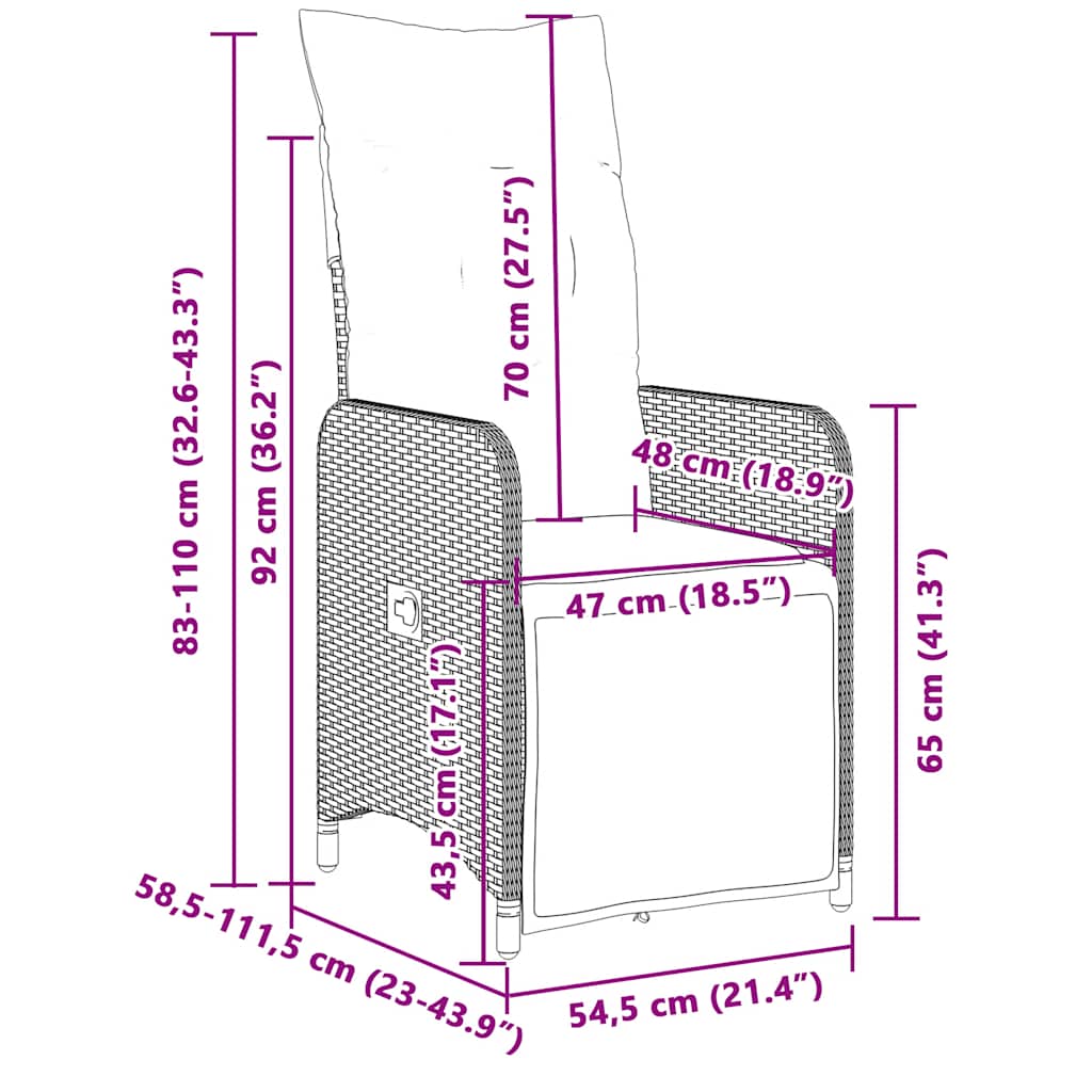 • Ανακλινόμενη καρέκλα κήπου με υποπόδιο: