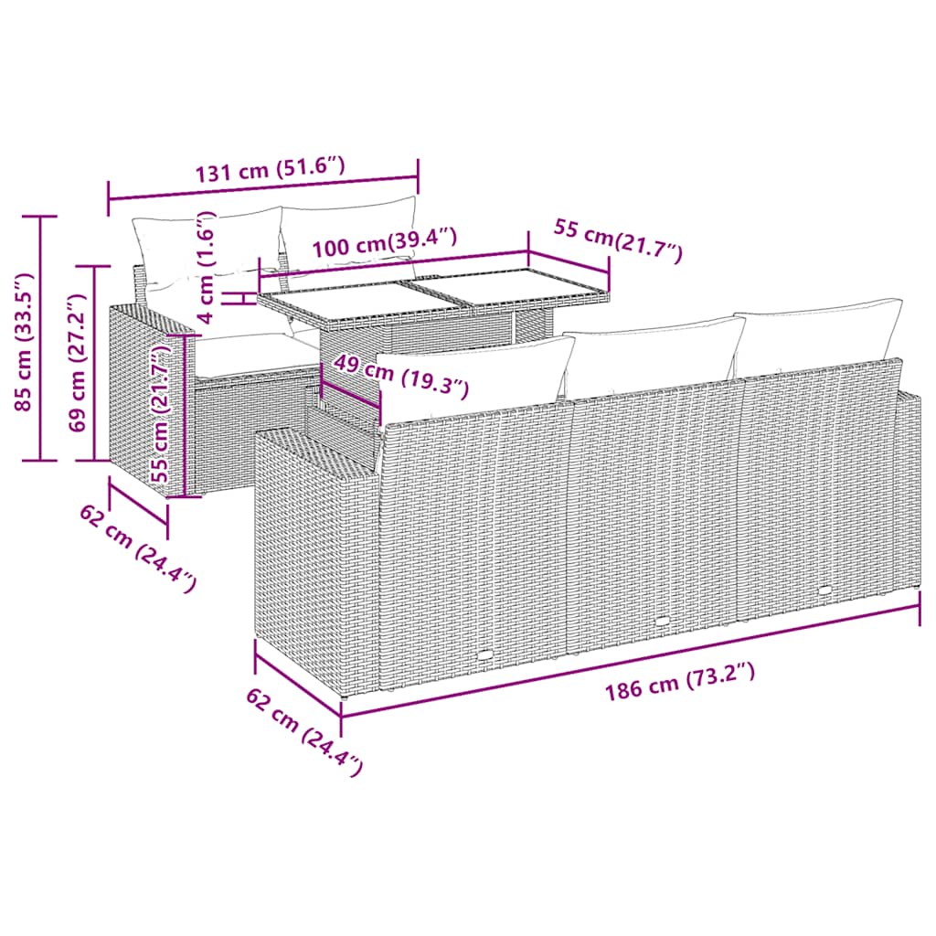 vidaXL Σετ Καναπέ Κήπου 6 τεμ. Μπεζ Συνθετικό Ρατάν με Μαξιλάρια