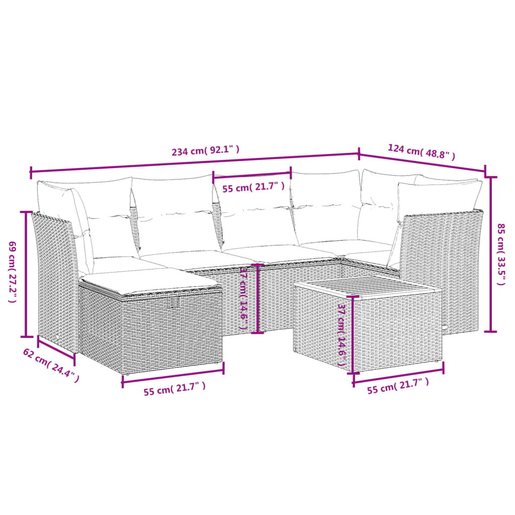 vidaXL Σετ Καναπέ Κήπου 7 τεμ. Μικτό Μπεζ Συνθετικό Ρατάν & Μαξιλάρια