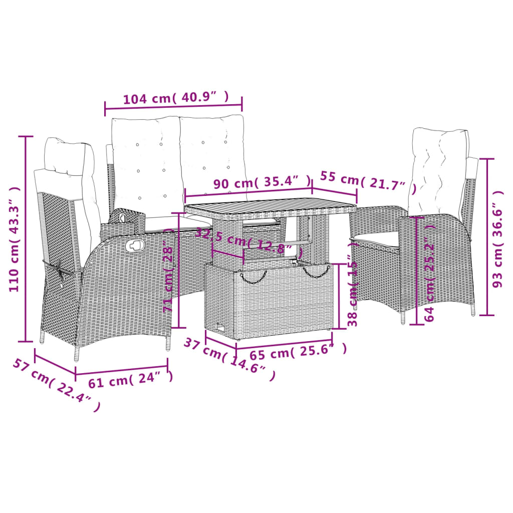 vidaXL Σετ Τραπεζαρίας Κήπου με Μαξιλάρια 4 τεμ. Μαύρο από Συνθ. Ρατάν