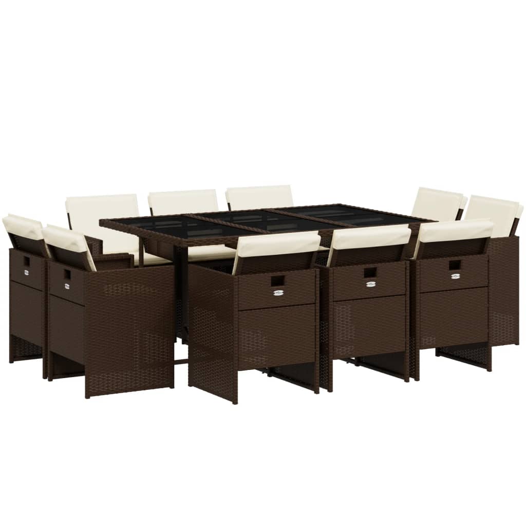 vidaXL Σετ Τραπεζαρίας Κήπου 11 τεμ. Καφέ Συνθετικό Ρατάν με Μαξιλάρια