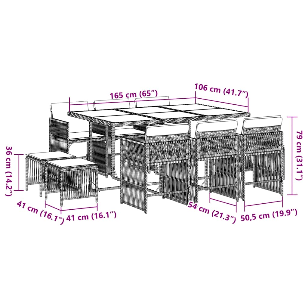 vidaXL Σετ Τραπεζαρίας Κήπου 11 τεμ Μαύρο από Συνθ. Ρατάν με Μαξιλάρια