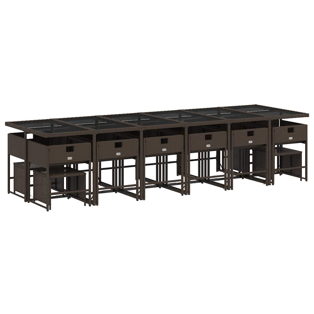 vidaXL Σετ Τραπεζαρίας Κήπου 17 τεμ Καφέ από Συνθ. Ρατάν με Μαξιλάρια