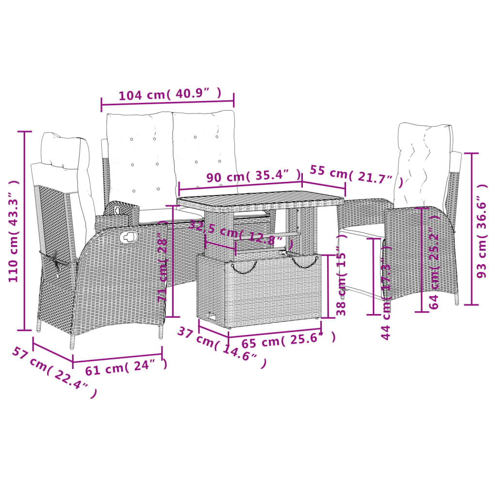 Αυτό το σετ τραπεζαρίας κήπου είναι μια εξαιρετική επιλογή για υπαίθρια γεύματα ή για χαλάρωση στον κήπο, την αυλή ή τη βεράντα.