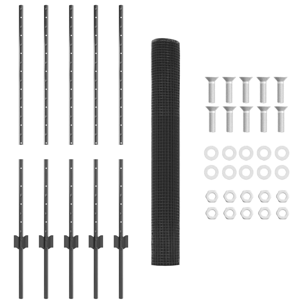 vidaXL Σετ Φράκτη Κοτόπουλου Σετ 2 Γκρι Μέταλλο Φράκτης 10 x 1 μ.