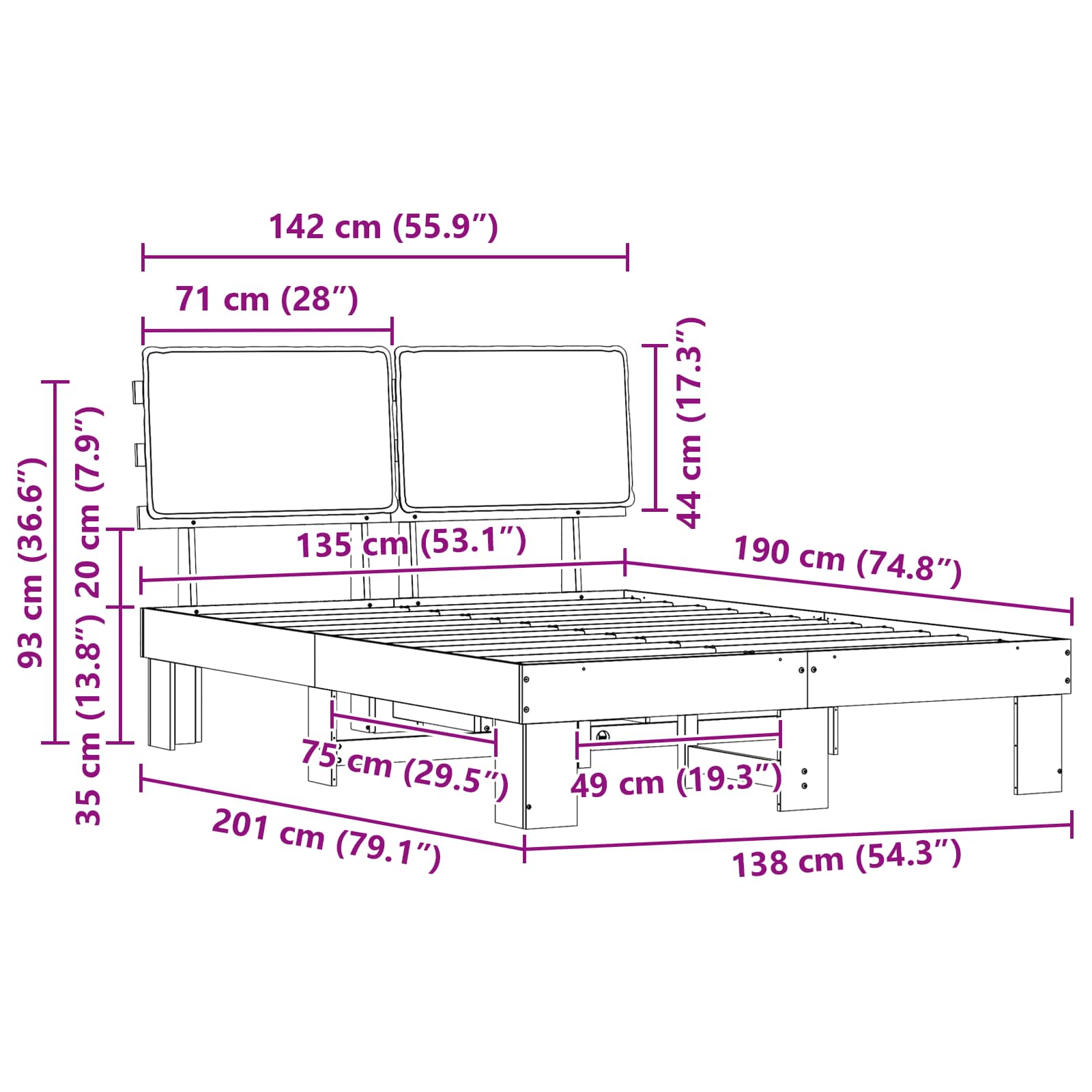 • Εύκολη συναρμολόγηση Χρειάζονται δύο άτομα και ένα κατσαβίδι για τη συναρμολόγηση, με σαφείς οδηγίες για εύκολη εγκατάσταση. Με λίγη προσπάθεια, μπορείτε να απολαύσετε το νέο σας πλαίσιο κρεβατιού. Κάντε απλό σκούπισμα με υγρό πανί για να κρατήσετε το κρεβάτι καθαρό.