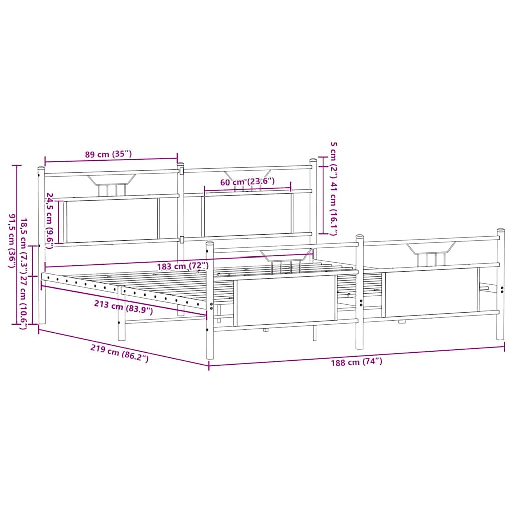 vidaXL Σκελετός Κρεβ. Χωρίς Στρώμα Καπνιστή Δρυς 183x213 εκ. Μεταλλικό