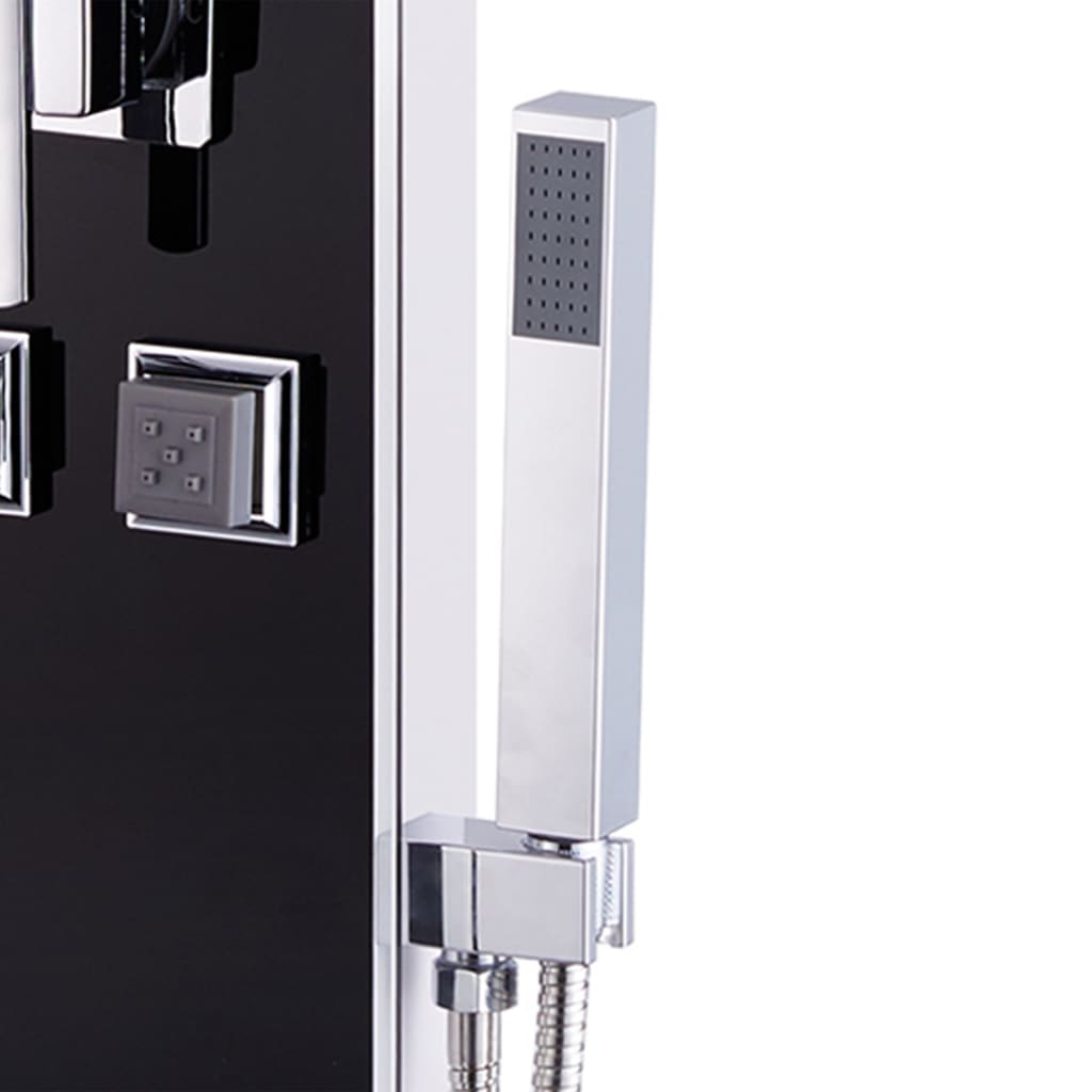 Η κολόνα ντους είναι κατασκευασμένη από ανοξείδωτο ατσάλι και ψημένο γυαλί. Το ψημένο γυαλί παράγεται με ελεγχόμενη θερμική ή χημική επεξεργασία, ώστε να είναι πιο ανθεκτικό σε σχέση με το κοινό γυαλί. Διαθέτει τρεις λειτουργίες ντους, οι οποίες επιλέγονται εύκολα: βροχή, υδρομασάζ και τηλέφωνο. Τα ακροφύσια σιλικόνης αντιστέκονται στη συσσώρευση αλάτων. Βιώστε μια πραγματικά χαλαρωτική εμπειρία ντους και απολαύστε το μοντέρνο στιλ αυτής της κομψά σχεδιασμένης στήλης ντους υδρομασάζ! Η συναρμολόγηση είναι εύκολη.