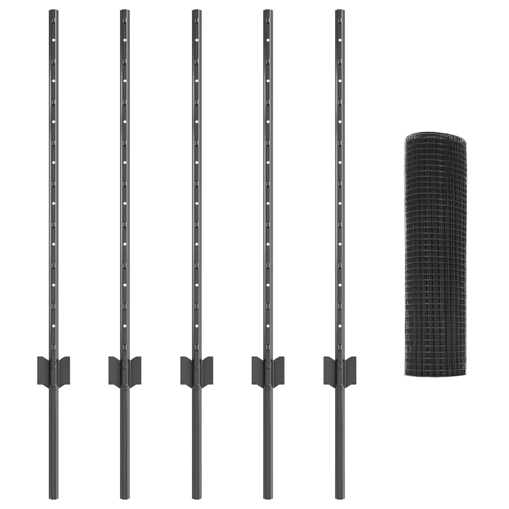 vidaXL Συρματόπλεγμα με 5 U Posts Γκρι 0.8x10 μ Χάλυβα