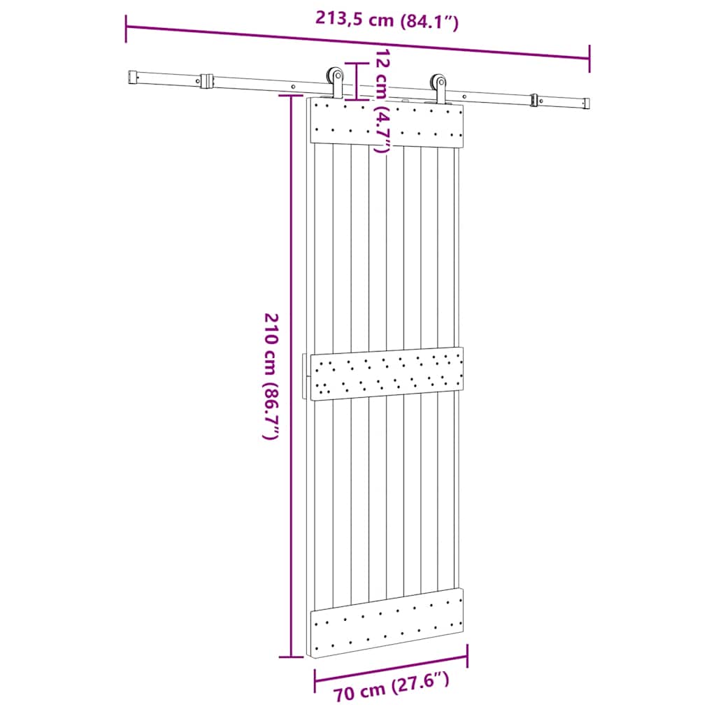 vidaXL Συρόμενη Μεσόπορτα με Μηχανισμό 70 x 210 εκ. Μασίφ Ξύλο Πεύκου