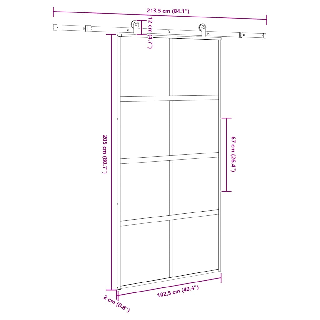 vidaXL Συρόμενη πόρτα με σετ υλικού από γυαλί και αλουμίνιο