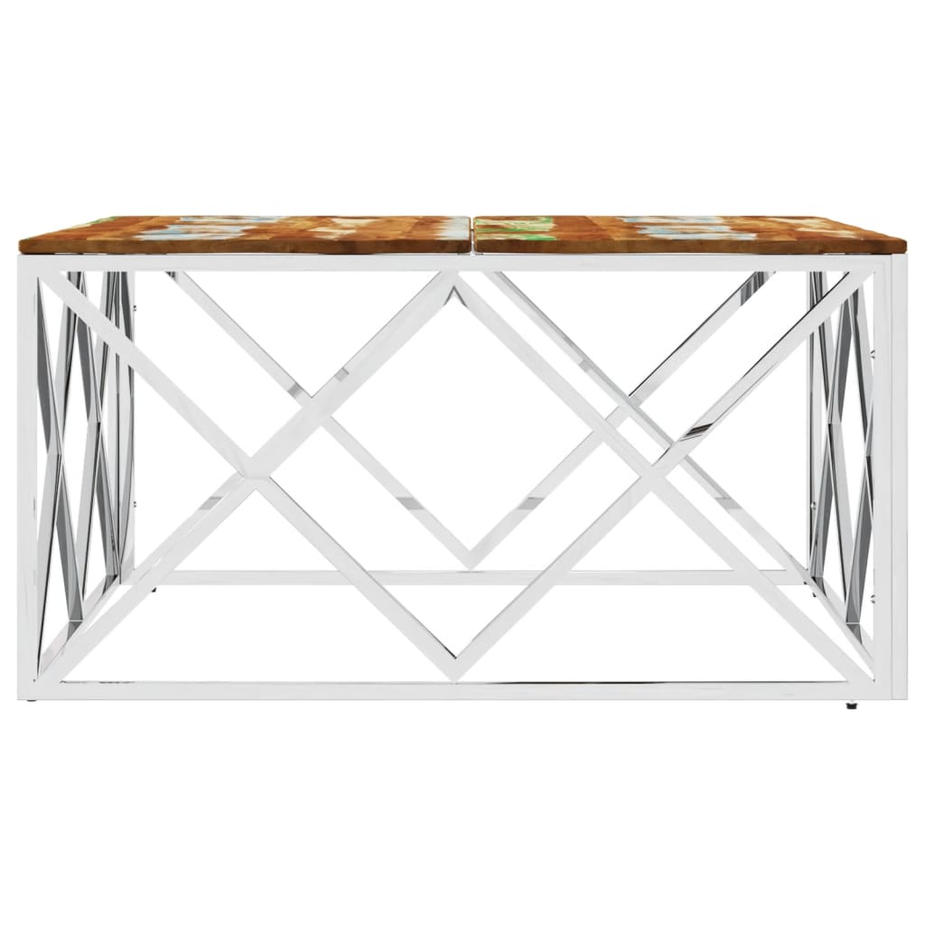 vidaXL Τραπεζάκι Σαλονιού Ασημί Ανοξείδωτο Ατσάλι & Μασίφ Ανακ. Ξύλο