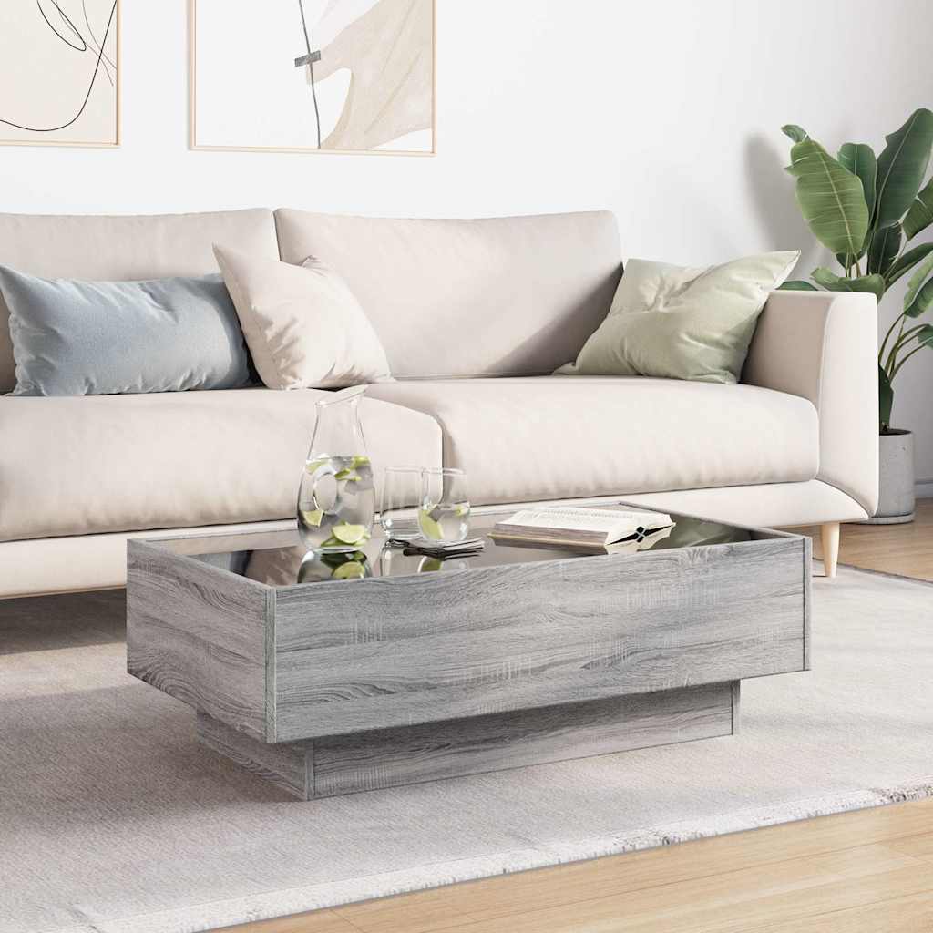 vidaXL Τραπεζάκι Σαλονιού με LED Γκρι 90x50x30 εκ. Επεξεργασμένο Ξύλο