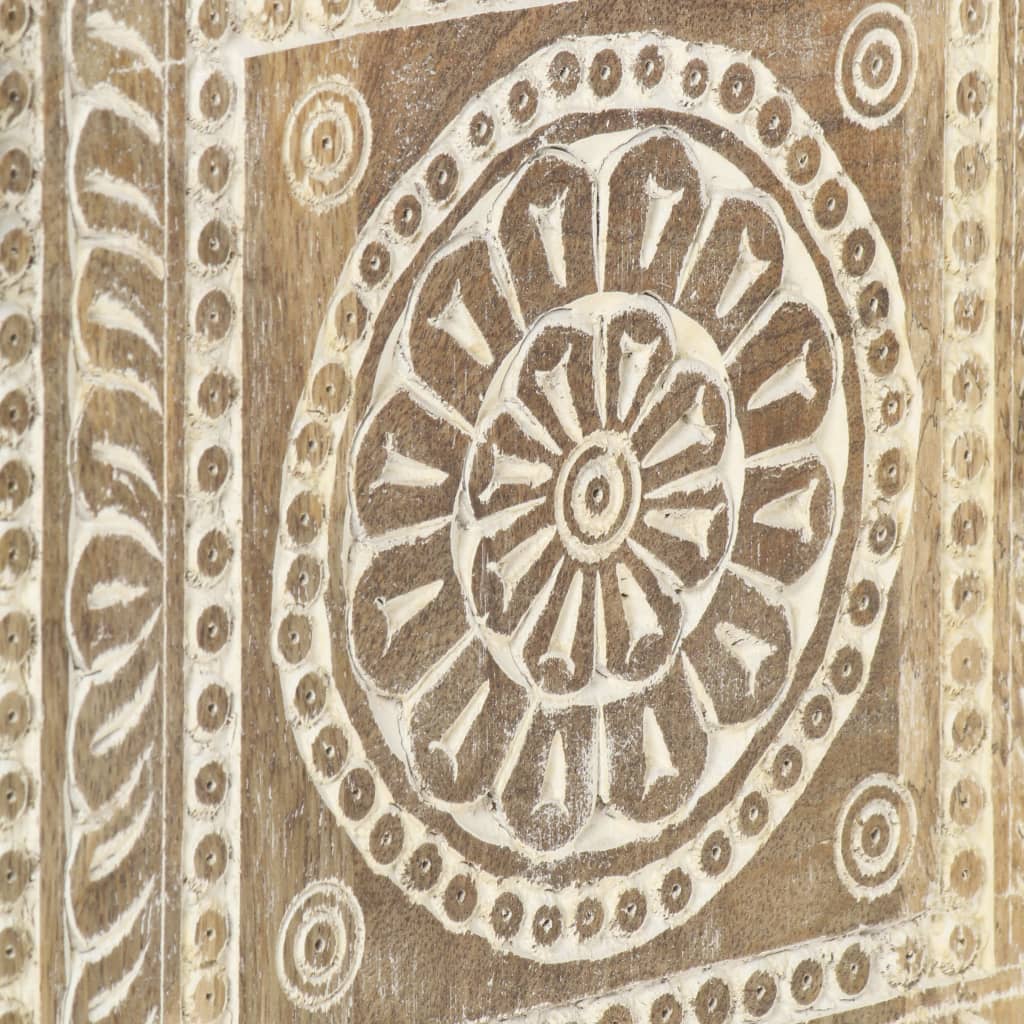 Το μασίφ ξύλο μάνγκο είναι ένα τροπικό σκληρό ξύλο. Πρόκειται για ένα πολύ ισχυρό ξύλο που αντέχει στη φθορά του χρόνου. Επιπλέον, η δεξιοτεχνία της κατασκευής και τα όμορφα νερά του ξύλου καθιστούν κάθε τραπεζάκι καναπέ ελαφρώς διαφορετικό από τα υπόλοιπα. Το βοηθητικό τραπεζάκι διαθέτει 1 ράφι και 2 τμήματα, παρέχοντας άπλετο χώρο για να τοποθετήσετε και να οργανώσετε διάφορα αντικείμενα. Επιπλέον, το σκαλιστό σχέδιο πατίνας ενισχύει τη γοητεία του.