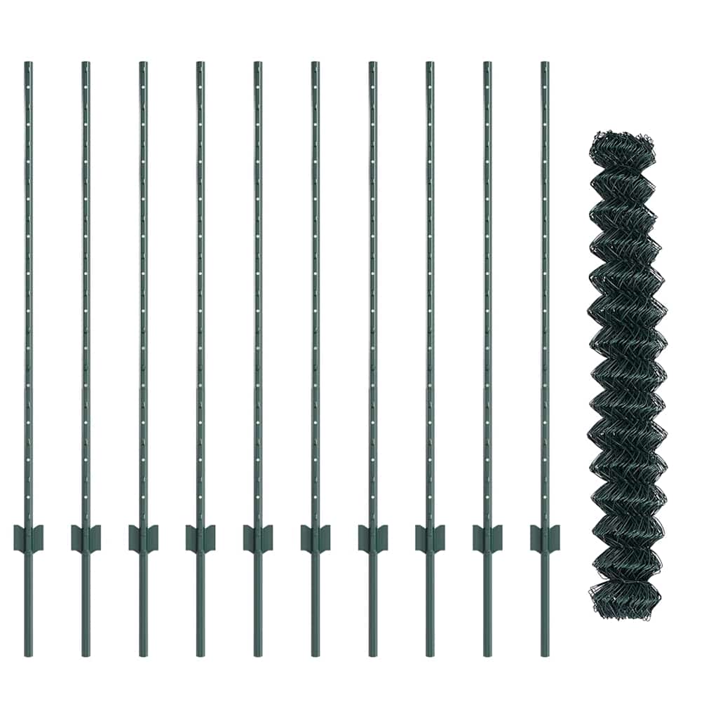 vidaXL Φράκτης από Αλυσίδα με 10 U Posts Πράσινος 1.2x10 μ Σιδερένιο