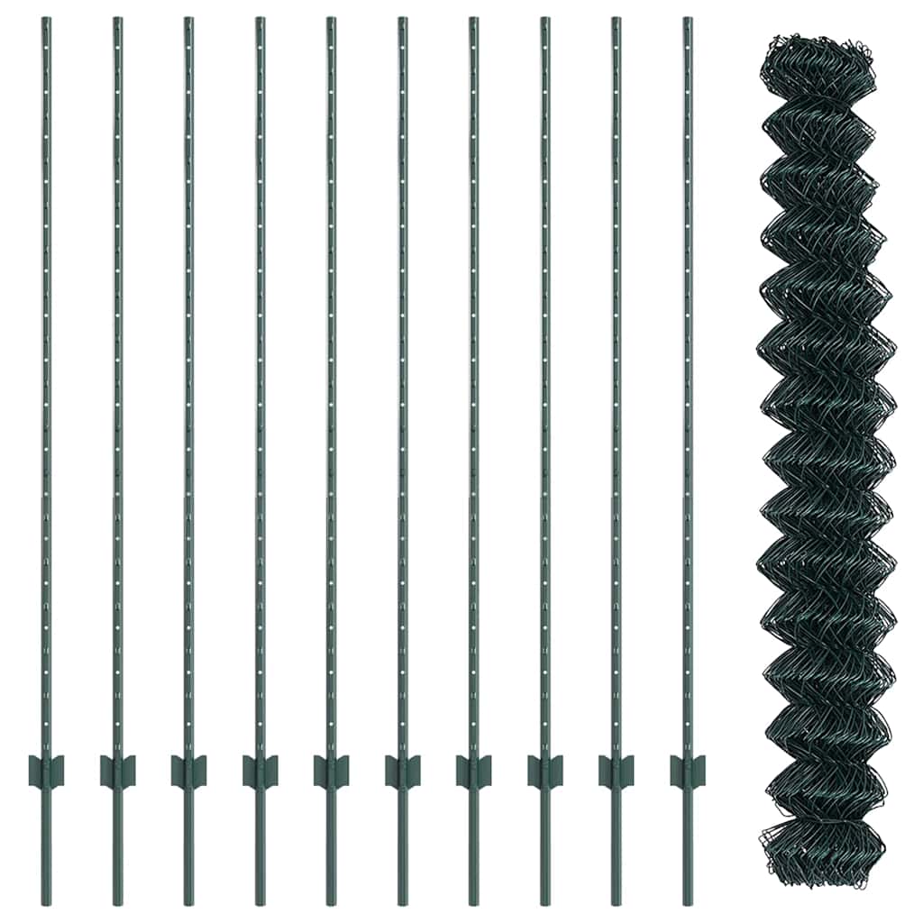 vidaXL Φράχτης αλυσίδας με 10 ποστάρια Πράσινος 1.6x10 μ Ατσάλι