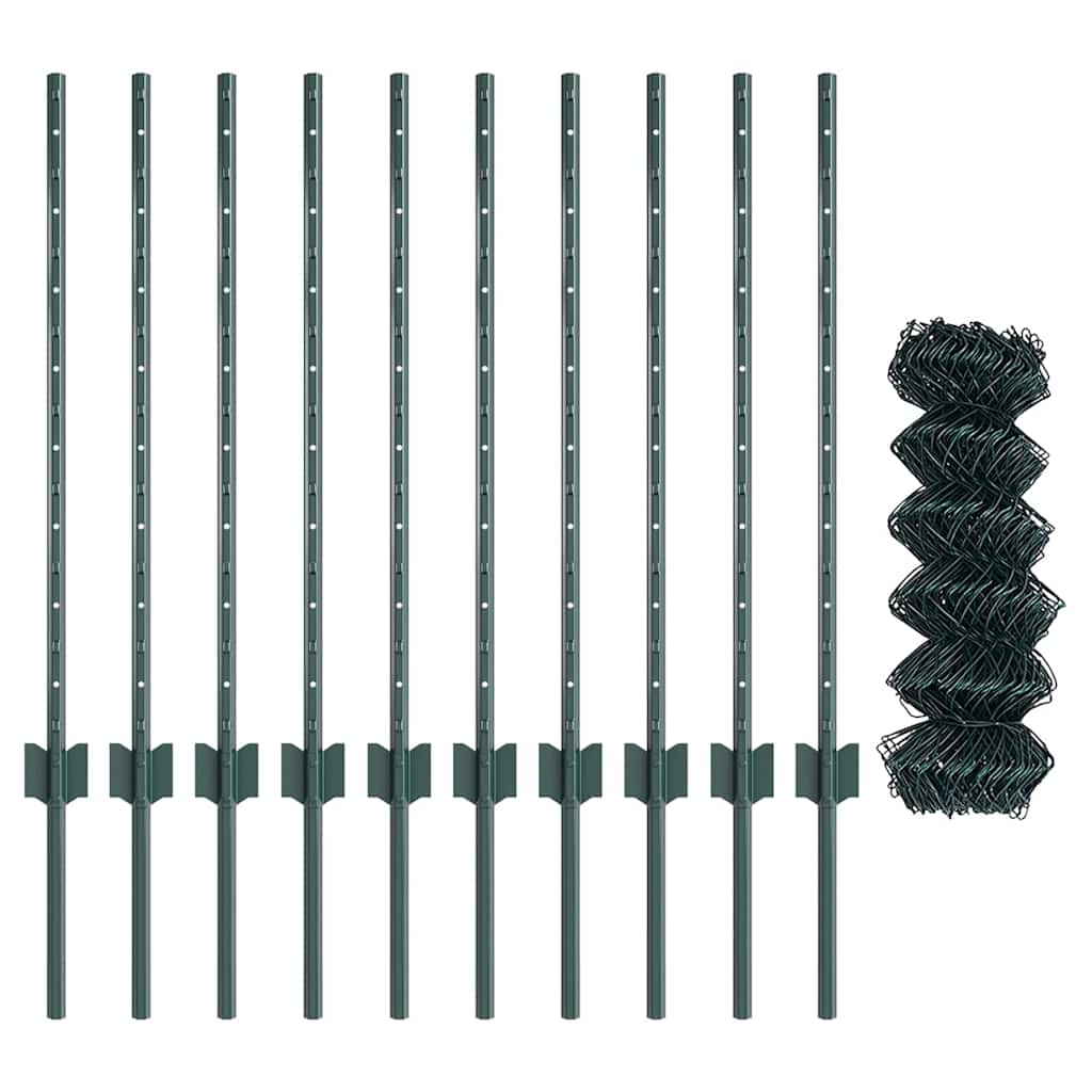 vidaXL Φράχτης από αλυσίδα με 10 U Posts Πράσινος 0.8x10 μ Χάλυβας