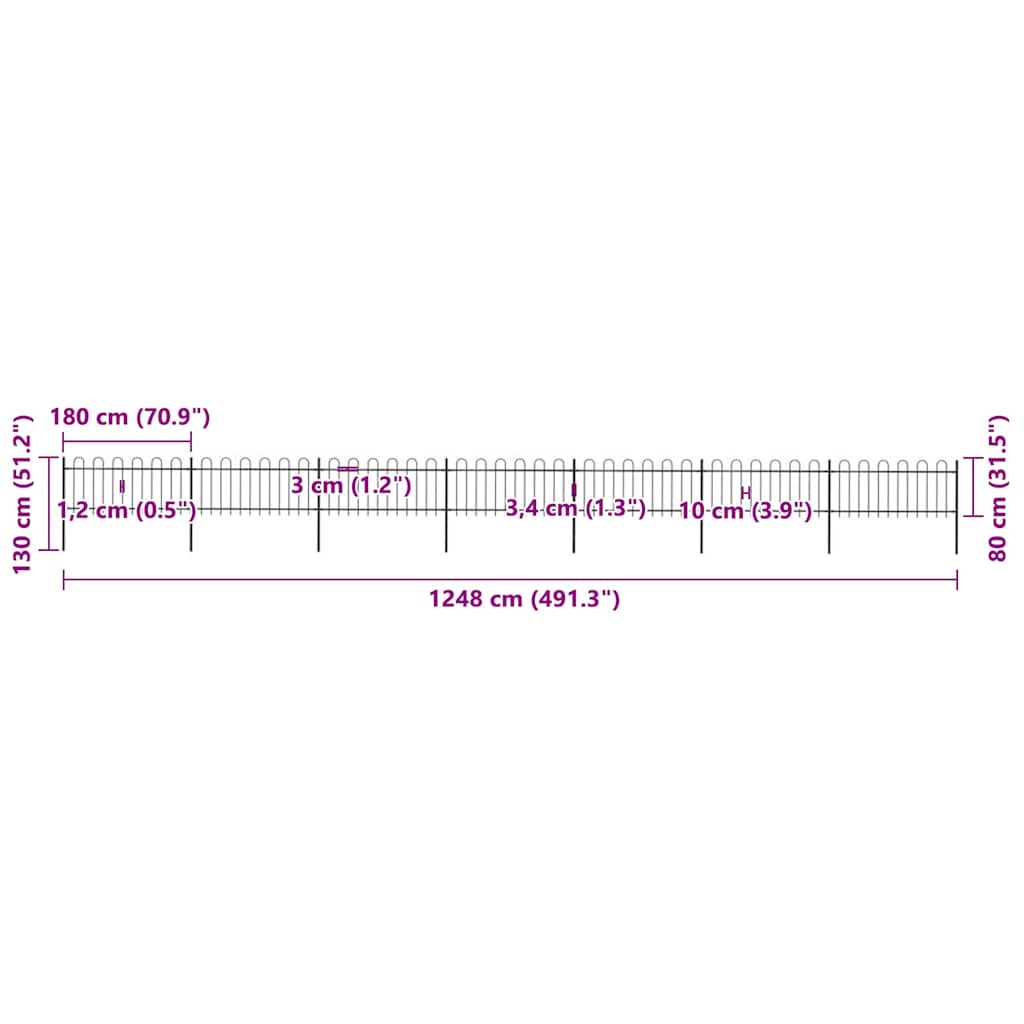 vidaXL Φράχτης Κήπου με Κορυφή από Ατσάλι, Μαύρος 1248 x 80 εκ.