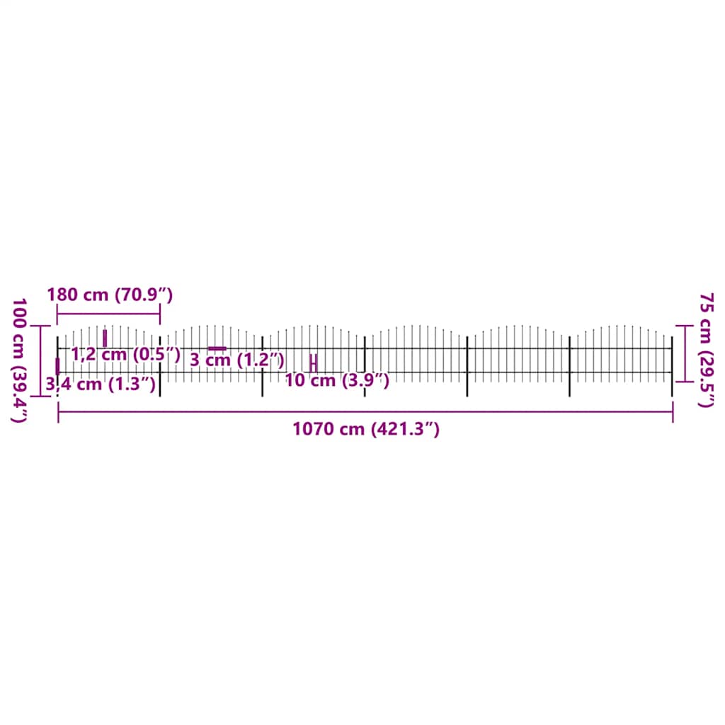 vidaXL Φράχτης Κήπου με Κορυφή Δόρυ από Ατσάλι, Μαύρος 1070 x 100 εκ.