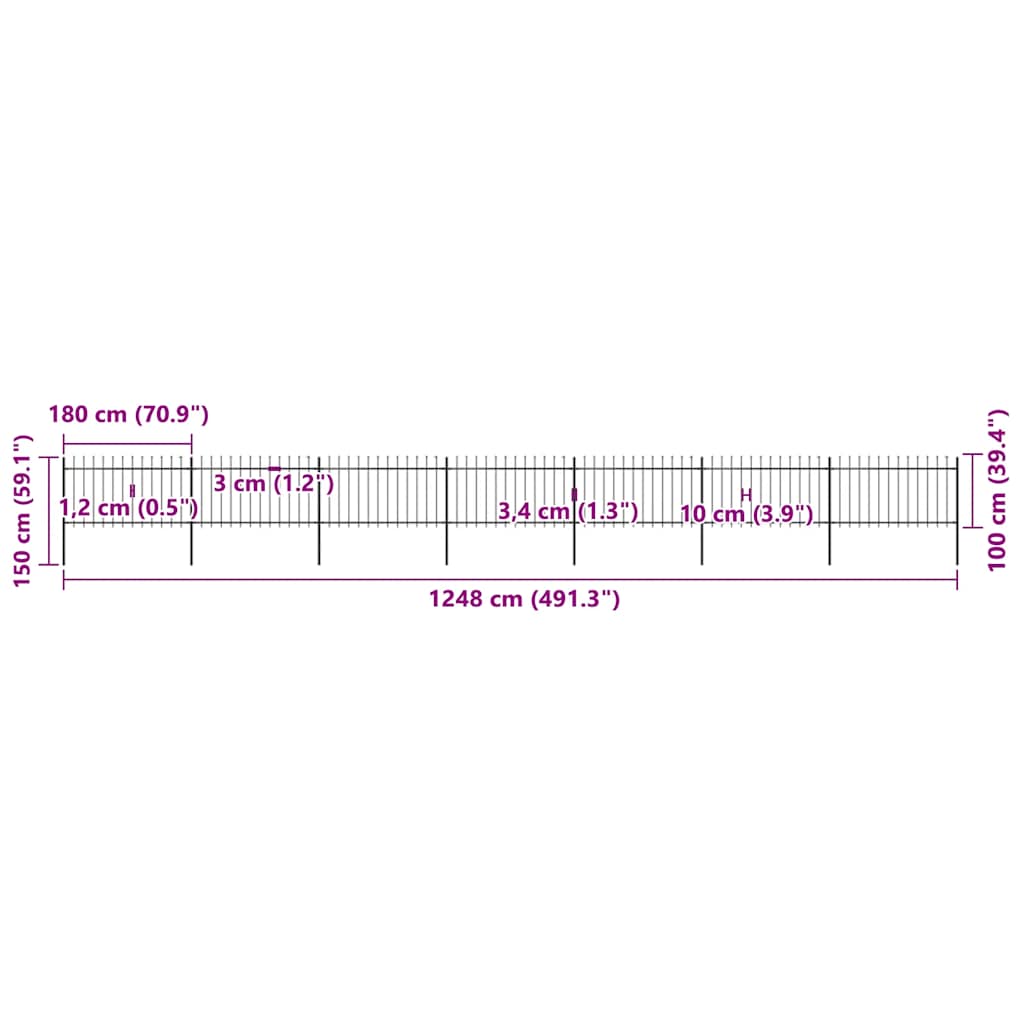 vidaXL Φράχτης Κήπου με Κορυφή Δόρυ Μαύρος Ατσάλινος 1248 x 100 εκ.