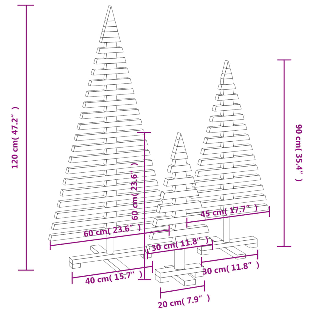 vidaXL Χριστουγεννιάτικα Δέντρα Ξύλινα Διακόσμηση 3Τεμ από Μασίφ Πεύκο