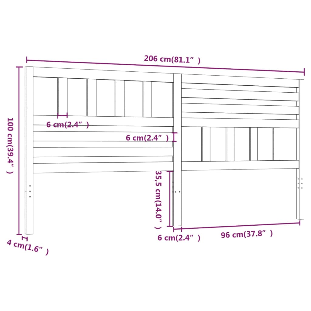 vidaXL Κεφαλάρι Κρεβατιού 206x4x100 εκ. από Μασίφ Ξύλο Πεύκου